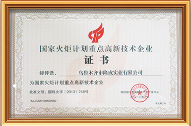 2016年自治區(qū)專精特新中小企業(yè)--烏魯木齊市隆成實(shí)業(yè)有限公司;